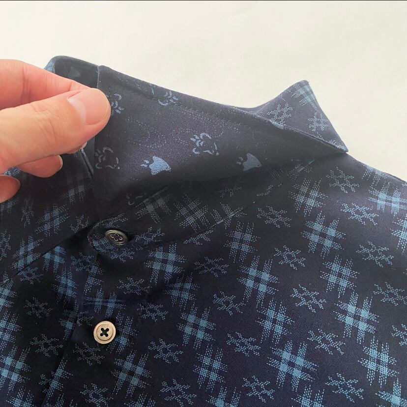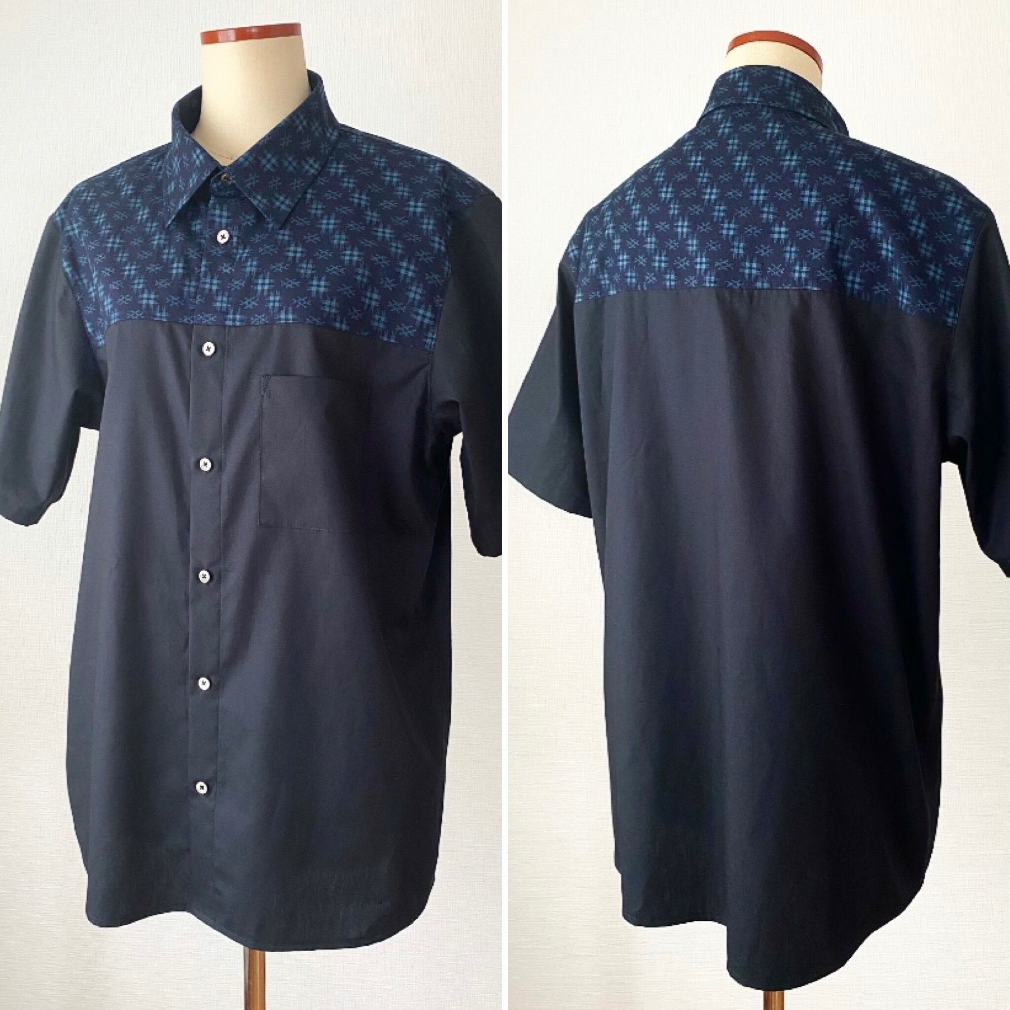 和柄生地と黒の生地の組み合わせで半袖シャツを作りました。
